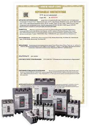 ТР ТС 004/2011 — регламент безопасности низковольтного оборудования. Область применения: 50–1000 В переменного и 75–1500 В постоянного тока. Сертификат подтверждает соответствие обязательным требованиям для обращения в странах ЕАЭС; маркировка EAC наносится после регистрации.
